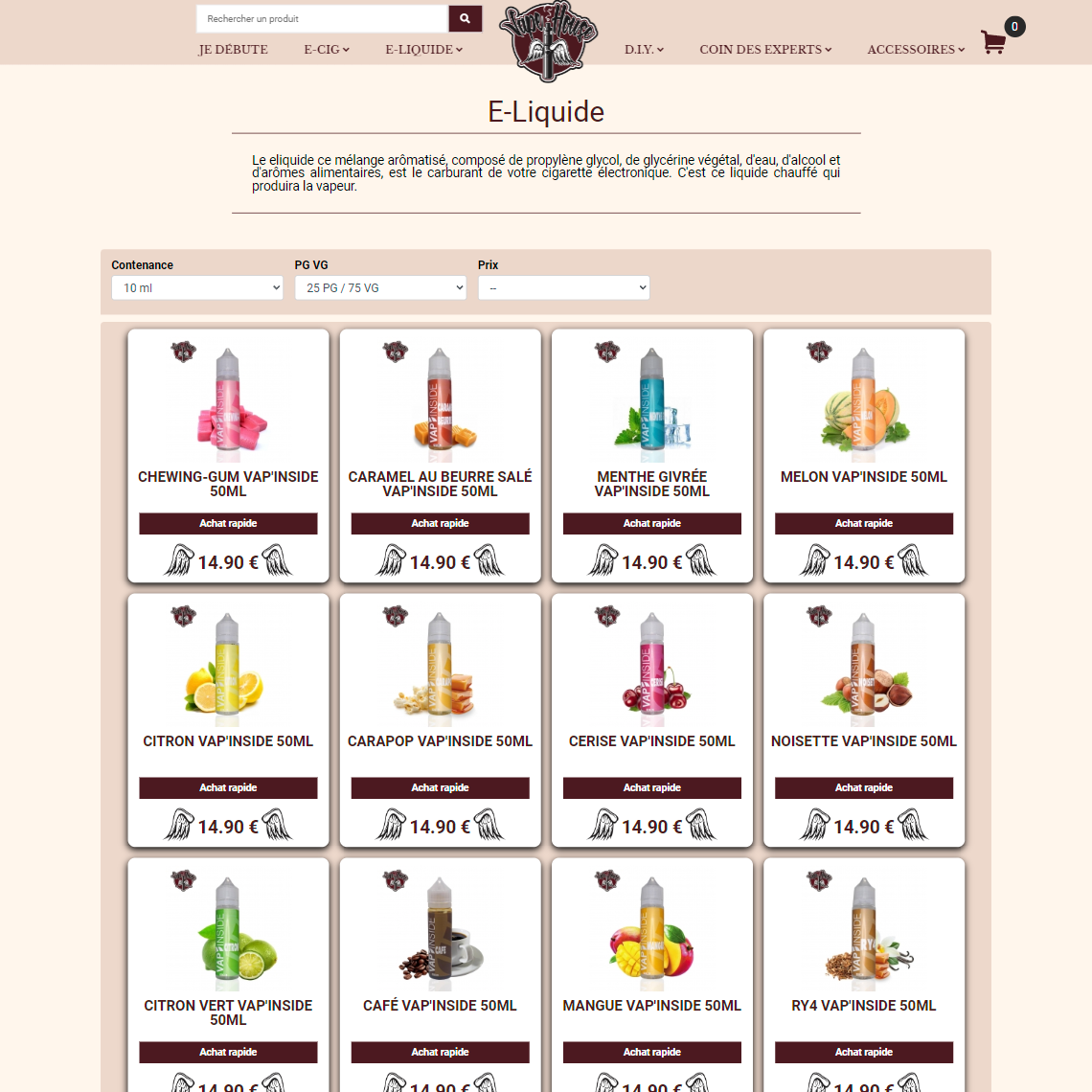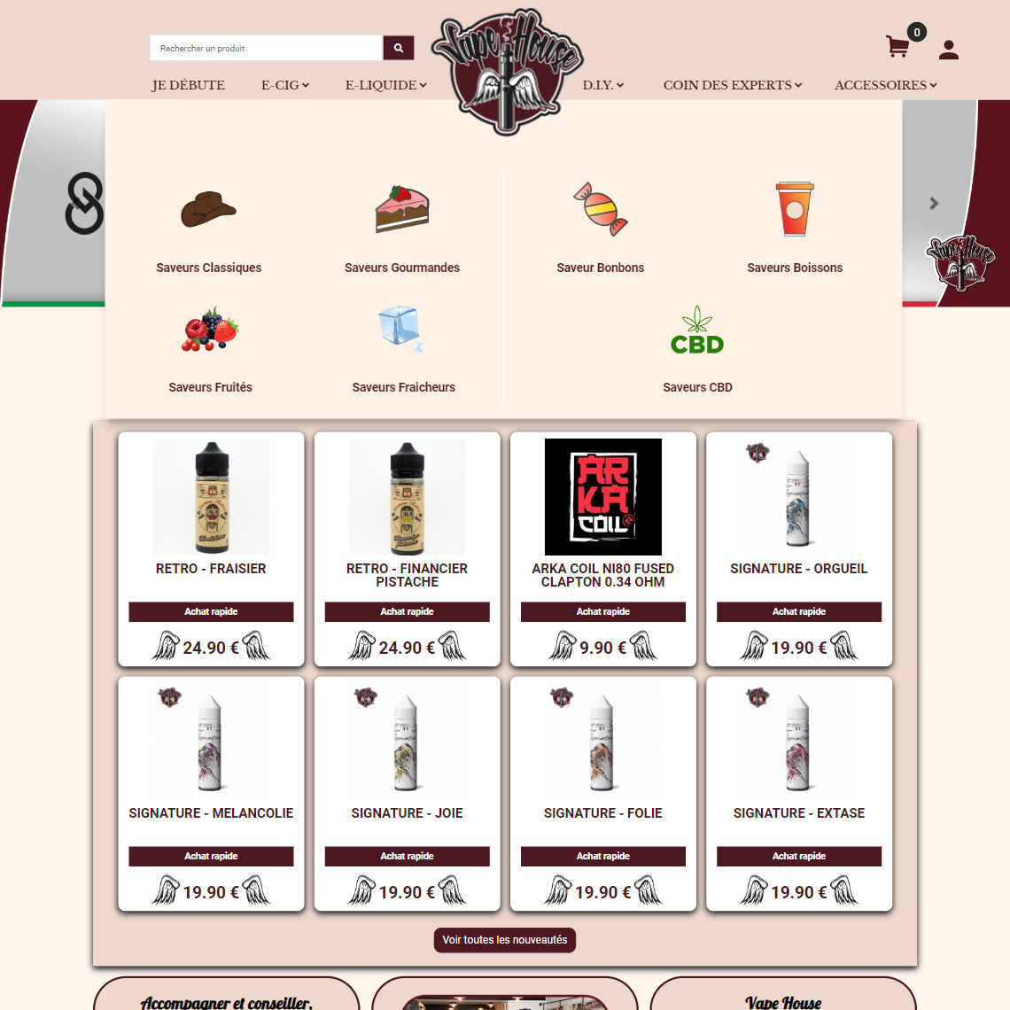 Afin de se faire connaître au plus grand nombre, le gérant de Vapehouse avait besoin d'un site e-commerce, permettant de vendre ses produits en ligne.